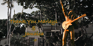 An end still shot. Mr Worldwide grateful as always, stops with a shot as simply 'Thank you to the Marleys and Jamaica' by the iconic Bob Marley statue one hand on guitar and other in the air at the museum. At the end of all that I can say what a really cool video capturing a lot of Marley History and bringing it on screen to share with the globe, especially the studios, statue and museum.