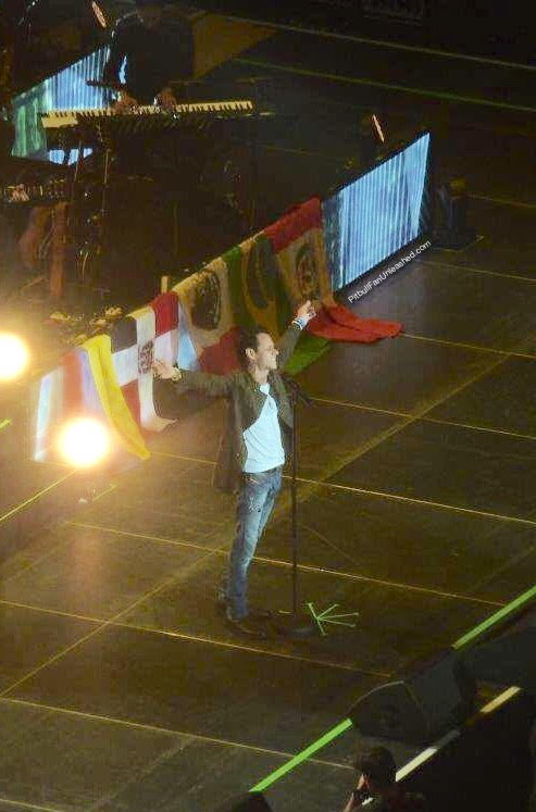 BOY can that man hold a note! Vocals on point as was the salsa on stage. Marc Anthony Live is another experience altogether. Marc Anthony gave us a medley of his hits one after another including Mi Gente from his film with Jennifer Lopez El Cantante to others such as Ahora QuiƩn and had everyone up on their feet most of the night. Couples dancing away in pairs throwing some salsa moves into the limited space. While others fist pumping along with Marc in the crowd who was visibly touched by the turn out, response and energy from the fans. One lucky girl got close enough to the salsa God as she was serenaded by a kneeling Marc Anthony on the edge of the stage.Thongs, bras to flags were thrown on stage at him. "Somos Latinos!" We're all Latinos Marc said as flags from Mexico, Puerto Rico to Brazil were thrown on stage th as he collected each one and gave it a place on stage. Even draping the Rainbow Flag on his shoulders as he danced away.